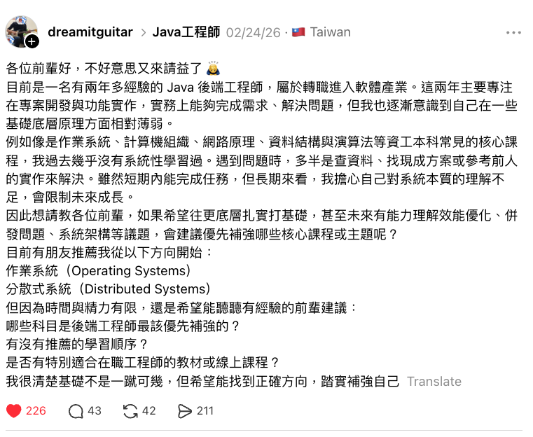 至於是否繼續念 CS 或者 CS 無用論,不是第一次遇到這個問題,2023 年 12 月,ChatGPT 剛上線的那個月,我去 成大資工所演講,主題是 軟體職涯的分享,當時就有同學問我如何面對 AI 世代;2025 年 6 月我在高雄示範大學演講時,現場也有同學和老師問到同樣的問題。