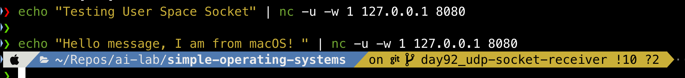 udpsend.elf與udprecv.elf,實現與 macOS 宿主機 (Host) 跨次元壁的雙向文字通訊。